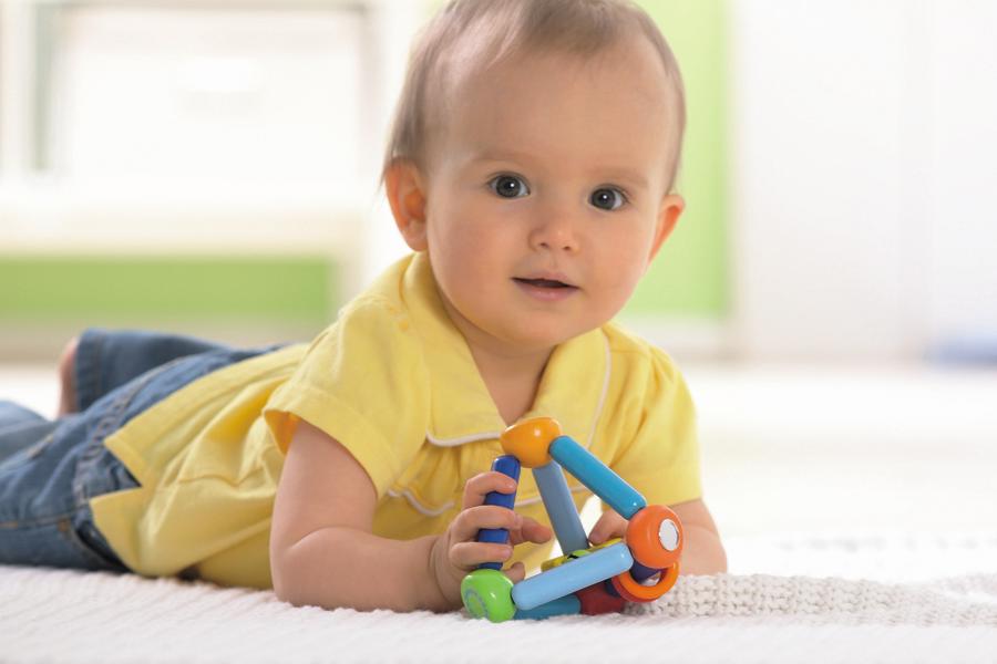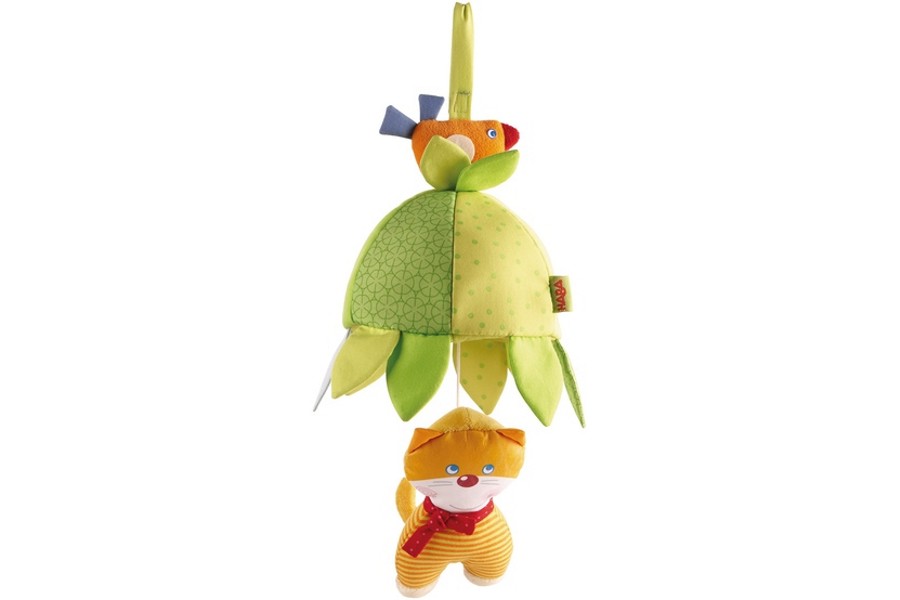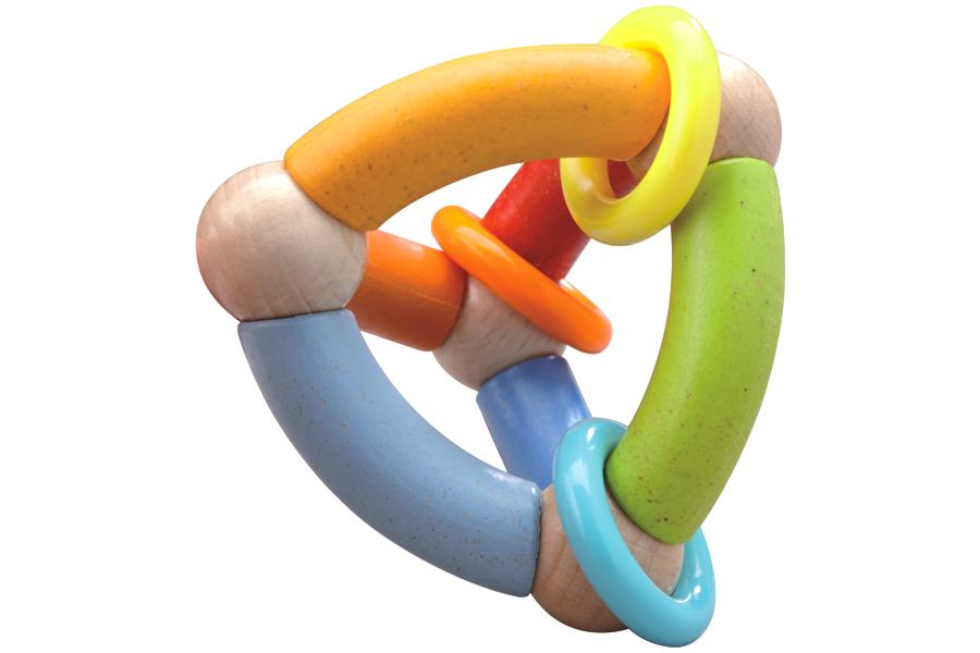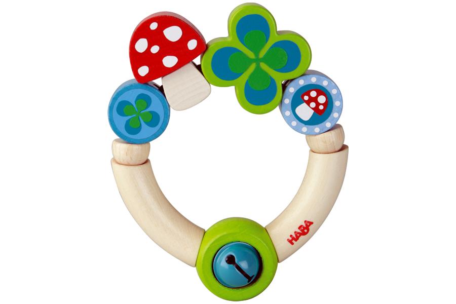 Farbenfrohe Kinderwagen- und Schnullerketten sowie Mobiles haben sich vor allem als Blickfang und zur Beruhigung etabliert, während Greiflinge einen ersten Einblick in die Welt der Formen bieten.